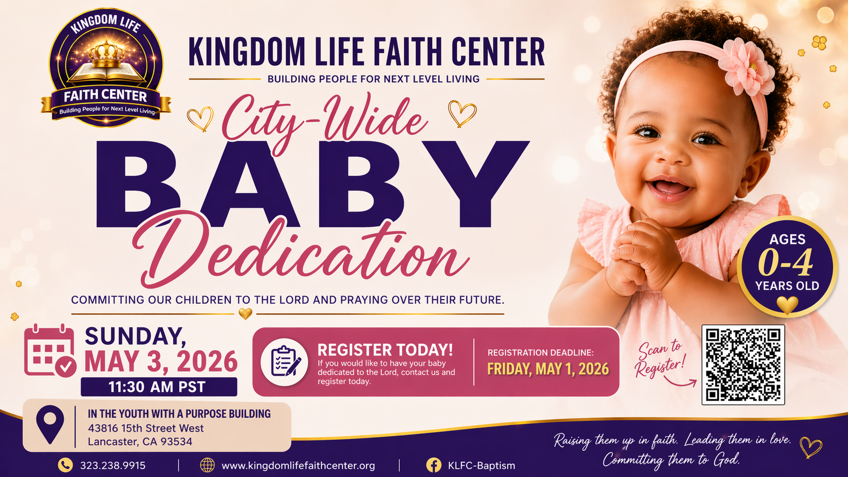 We believe that children are a precious gift from God, and we are excited that you are considering child dedication. By taking part in this special service, you, along with your family, friends, and our church community, are committing to helping your child grow in their faith in accordance with the Word of God. Your intentional commitment will help create a loving environment that honors God and supports your childrens journey to know, love, and follow Christ. Click here to register.